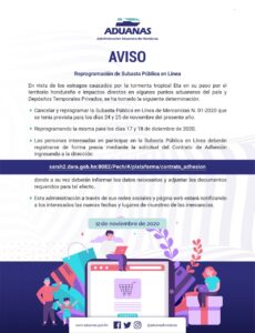 Reprogramación de Subasta de Aduana 01/2020 Susy Romero 12 noviembre, 2020 1214 Views 0 Comments Artículos Share :